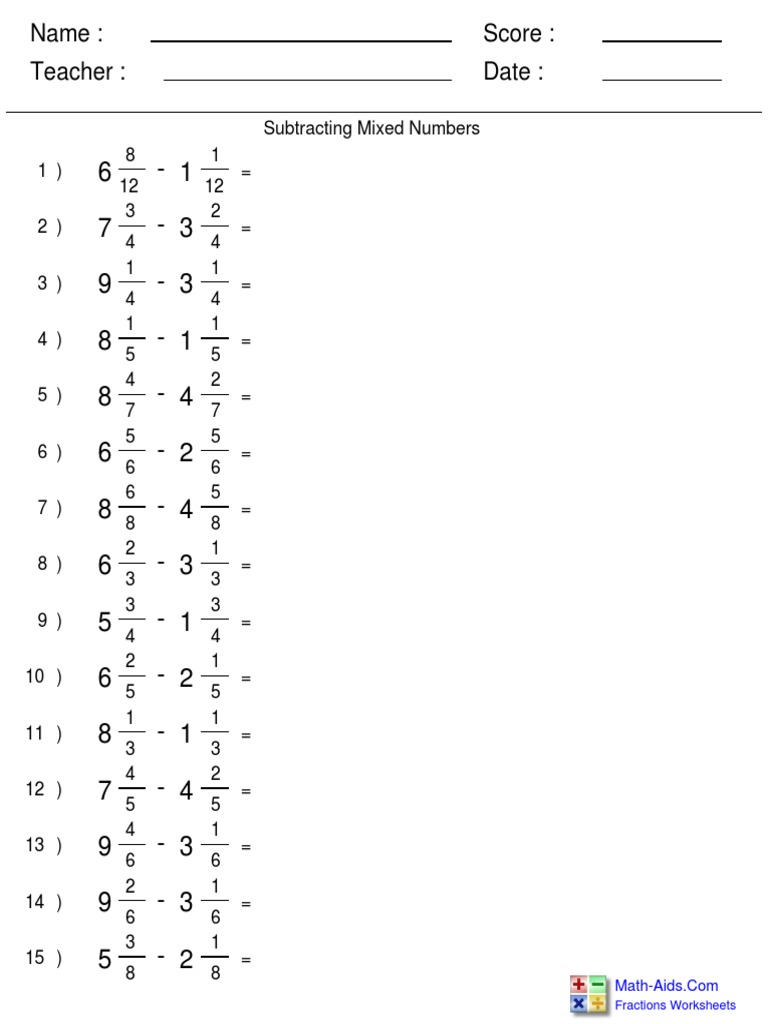 Some of the worksheets displayed are Adding and subtracting mixed fractions Subtracting mixed numbers work 1 Subtracting mixed numbers Multiplying mixed numbers Name date one digit addition and Mixed number multiplication l1s1 Item 4938 adding mixed numbers Fractions packet. Posted on July 31 2021 by Azeem Morris. Worksheet 1 Worksheet 2 Worksheet 3 Worksheet 4 Worksheet 5 Worksheet 6.
