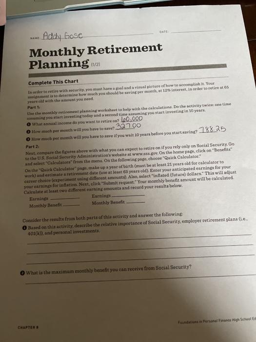 Showing top 8 worksheets in the category - Monthly Retirement Planning. Will Social Security be enough. Monthly Retirement Planning Worksheet Answers.
